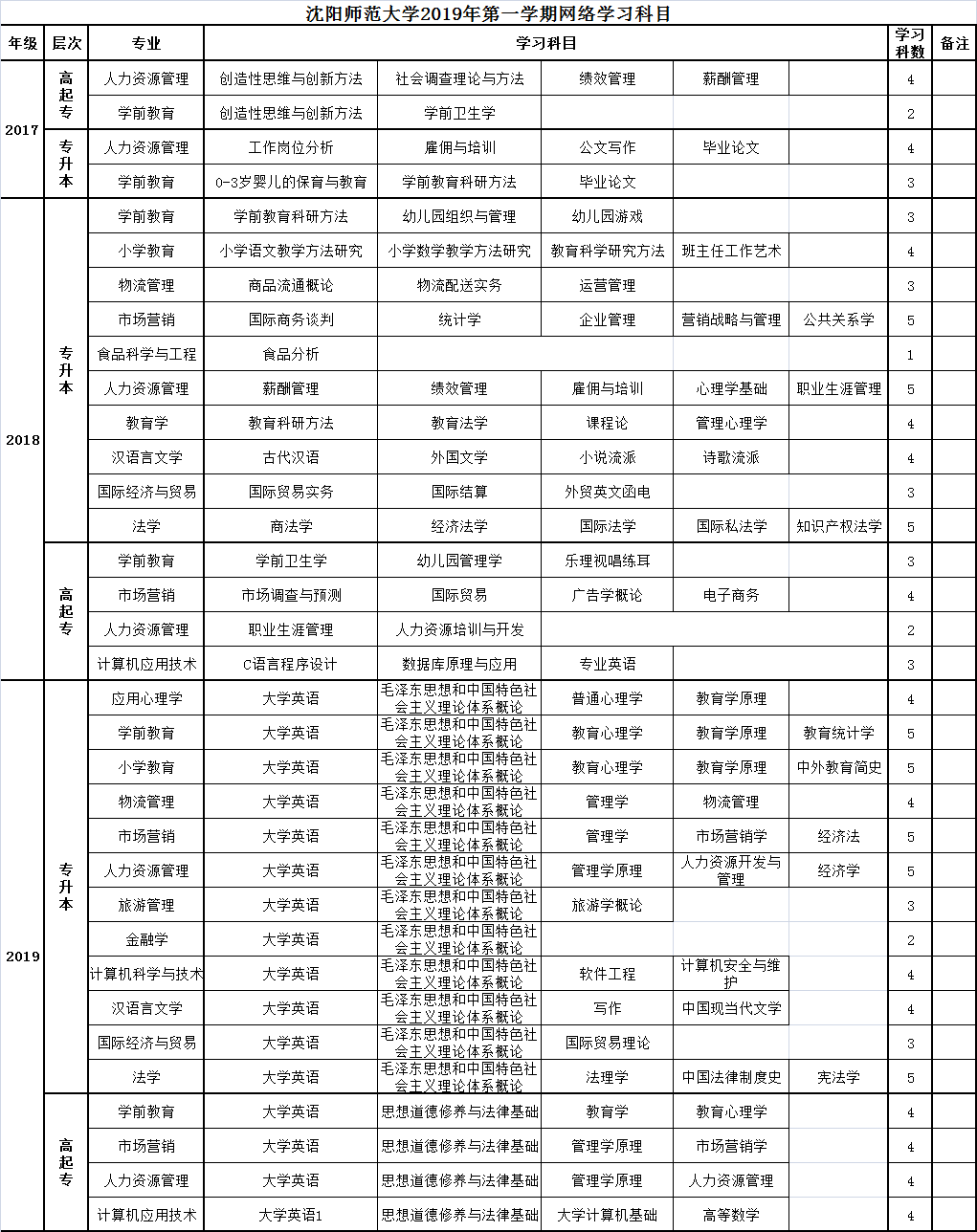 2017級學(xué)前教育、人力資源專業(yè)高起專和專升本學(xué)生;