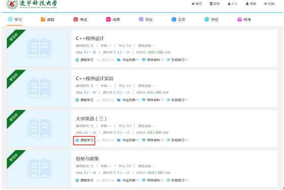 1、登錄后,進入主頁面,找到學(xué)習(xí),然后選擇課程學(xué)習(xí)。