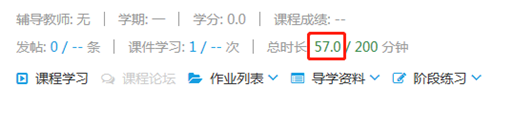4、學(xué)習(xí)完成后,在主頁面會顯示學(xué)習(xí)時長。每科學(xué)習(xí)200分鐘,課件學(xué)習(xí)次數(shù)大于5次即可。